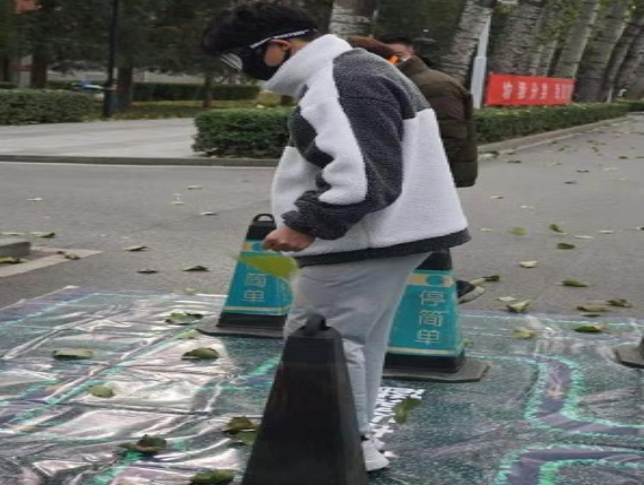 体验醉酒行走,戴上模拟眼镜后,在设置障碍物的路线图按照指定路线行走。个别戴上模拟重度醉酒眼镜的体验者跌跌撞撞走了半圈后认不清路线,无法继续行走。体验过后,认识到醉酒会影响身体的平衡,并出现脚本不稳、视觉模糊等醉酒状态,体会到过量饮酒的危害。