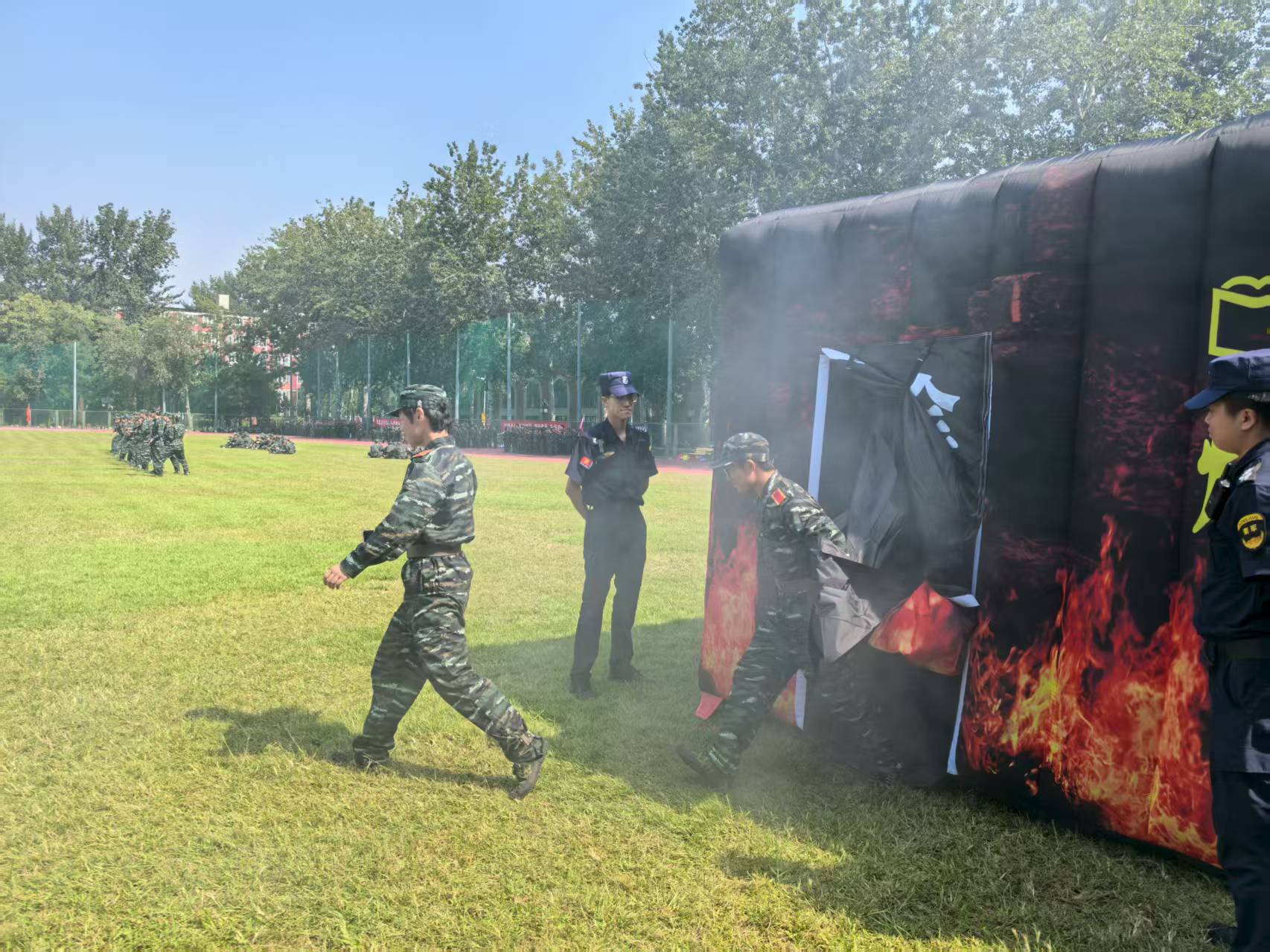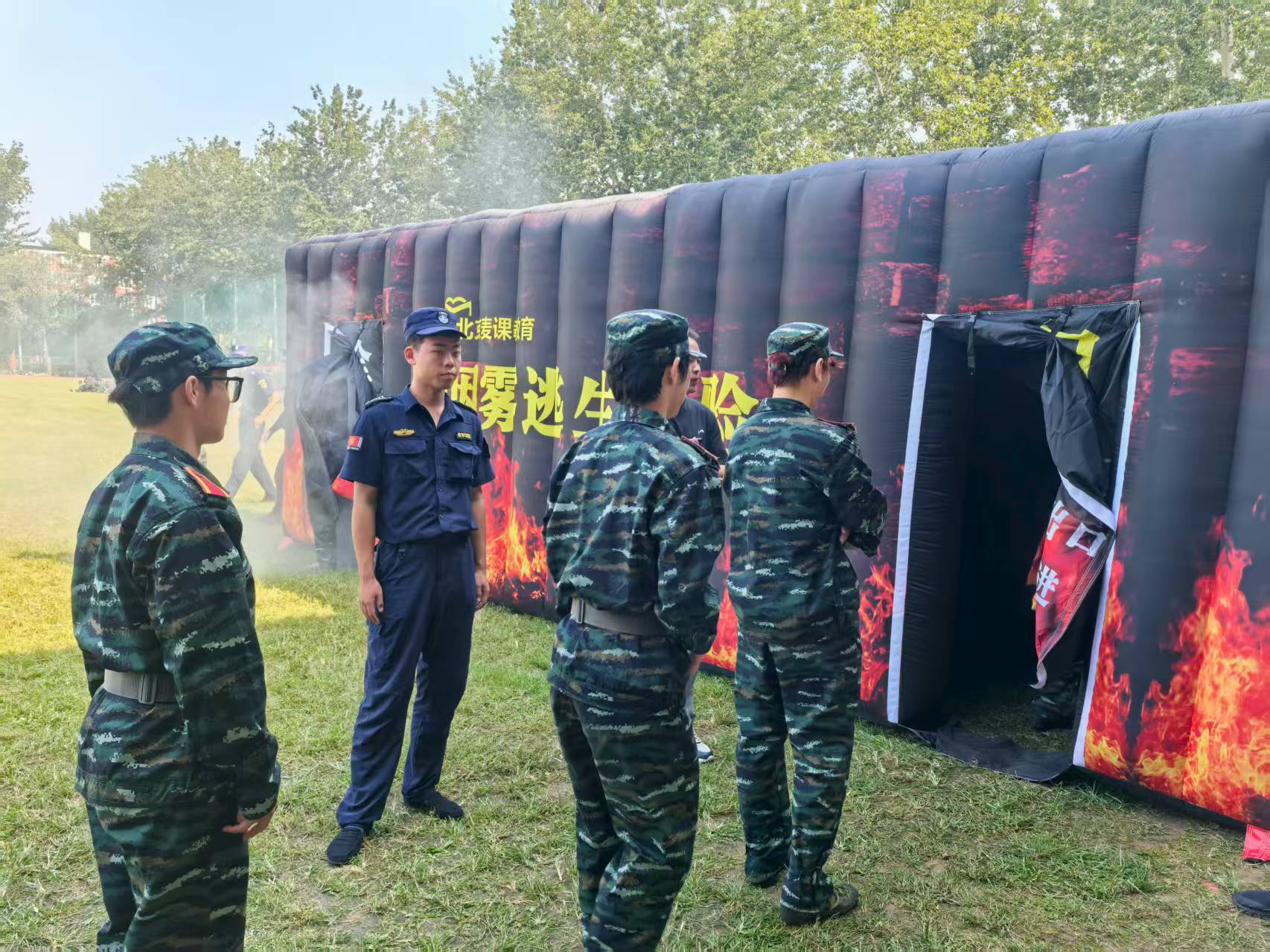 在烟雾逃生体验区,模拟场景还原了火灾发生时的浓烟环境(采用安全无毒的烟雾模拟剂)。让新生体会逃生要点:保持低姿弯腰、用湿毛巾捂住口鼻、沿墙壁有序撤离、避免拥挤踩踏。新生们分组进入模拟空间,在有限视野中快速判断逃生路线,亲身体验火灾现场的紧张氛围,切实掌握浓烟环境下的科学逃生技巧。