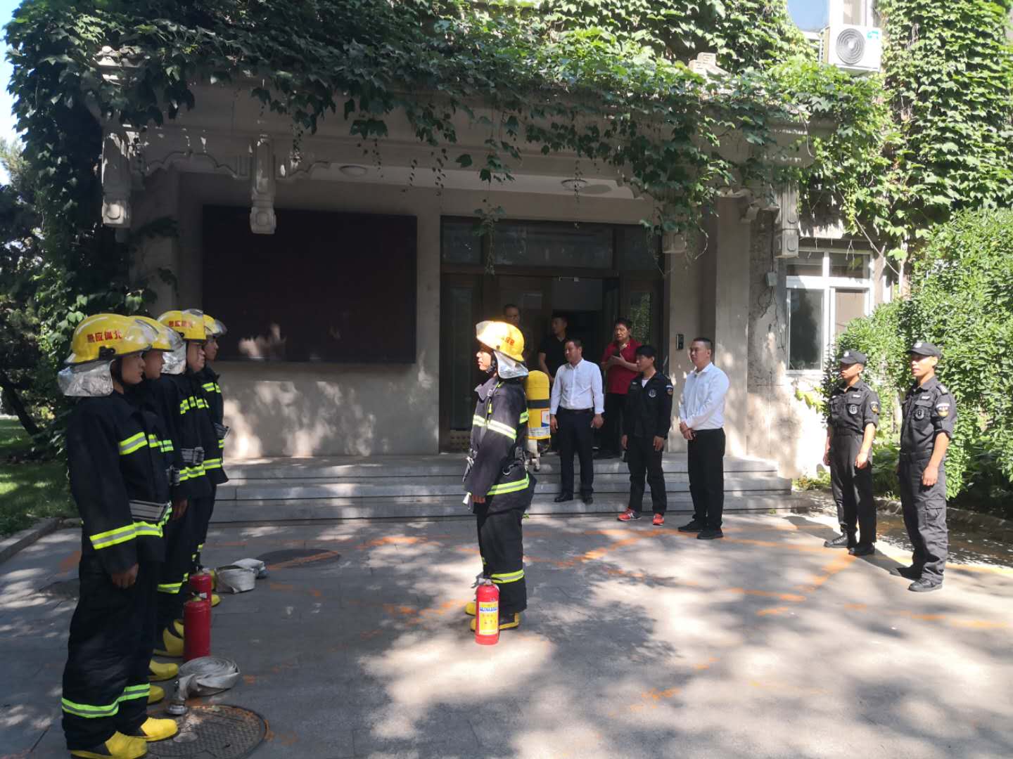 6月10日,保卫部在校园组织了一次应急消防火情处置演练。
